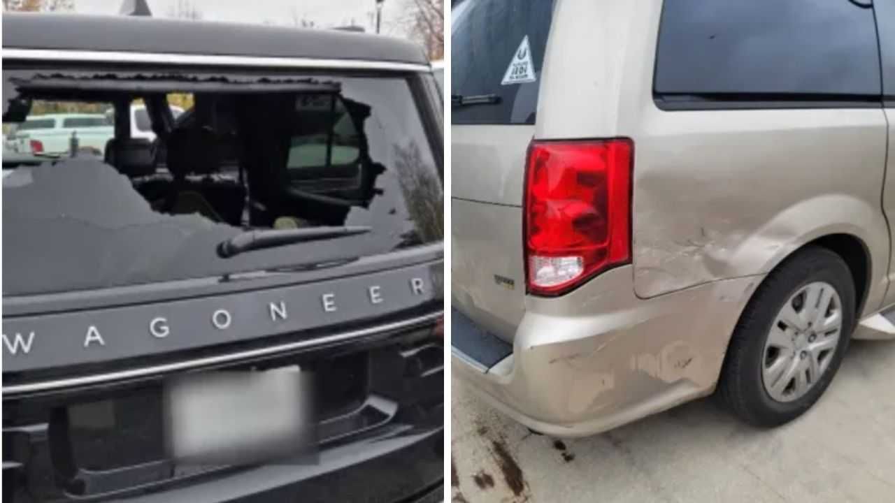 While no Border Patrol agents were harmed, photographs shared by the DHS show damage to two federal vehicles.