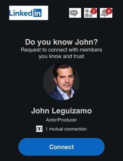 There is no way John Leguizamo knows me, but following the professional networking platform’s suggestion, I went ahead and sent an invitation to the actor/producer to connect.