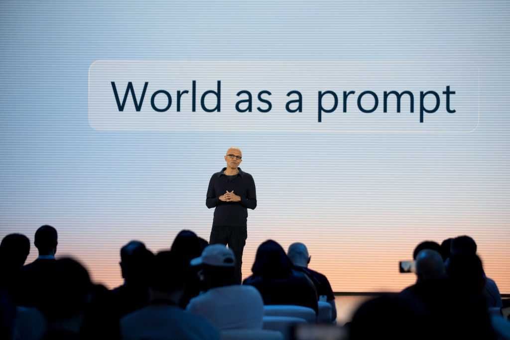 Nadella explained that he prefers users would think of AI "as a scaffolding for human potential vs. a substitute" for human labor.