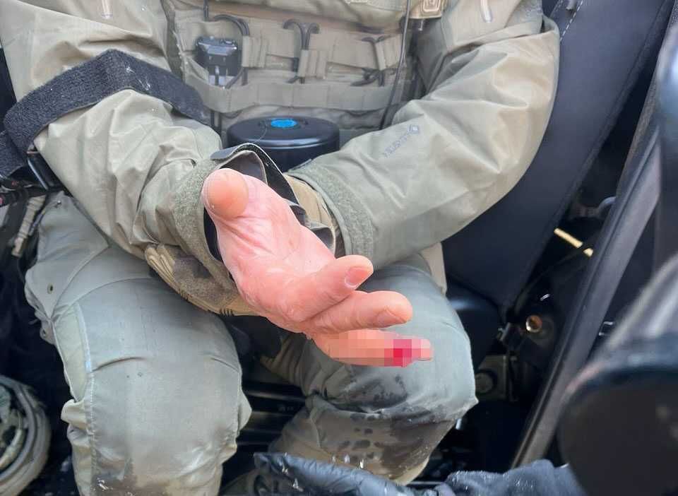 One of the photographs appears to show a medic tending to an HSI officer who is missing the end of the fourth digit on his right hand. Another photo apparently shows the missing piece of the finger with its nail intact inside a plastic container.