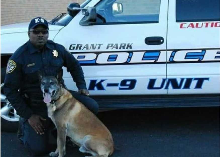 Screenshot of photo featuring Officer Quincy Spears and a K-9 officer on the Grant Park Police Department Facebook page