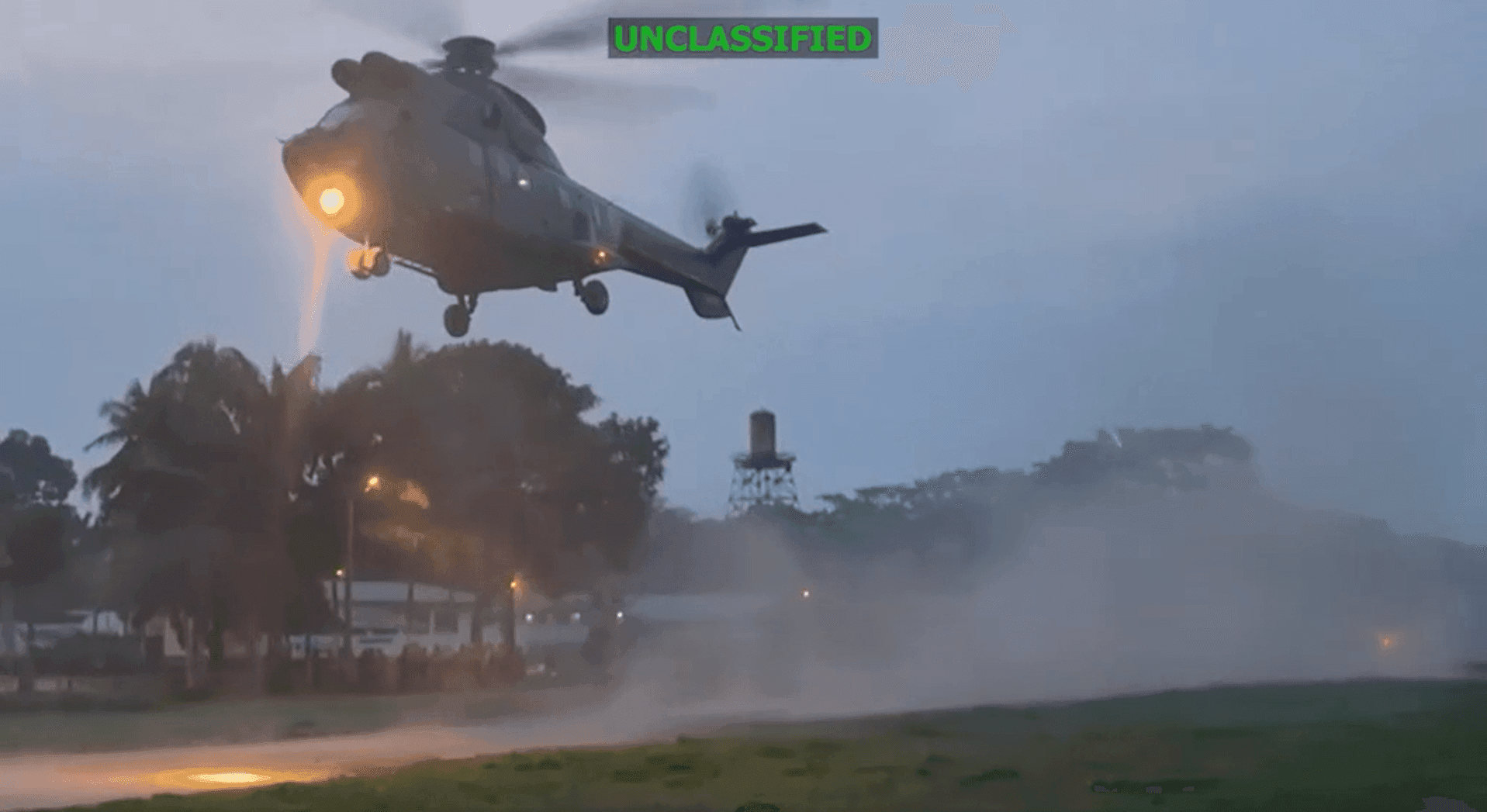 The press release included video footage from the operation. The video shows some shots of helicopters lifting off, and some aerial footage shows a group of men gathering around or loading into a helicopter.