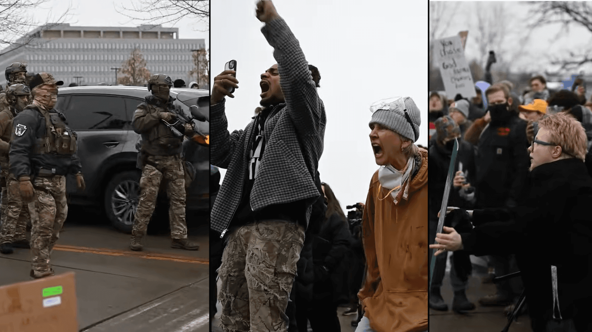 The footage shows chaotic chants and epithets tossed by dozens of activists against agents outside of the Bishop Henry Whipple Federal Building in the Minneapolis area.