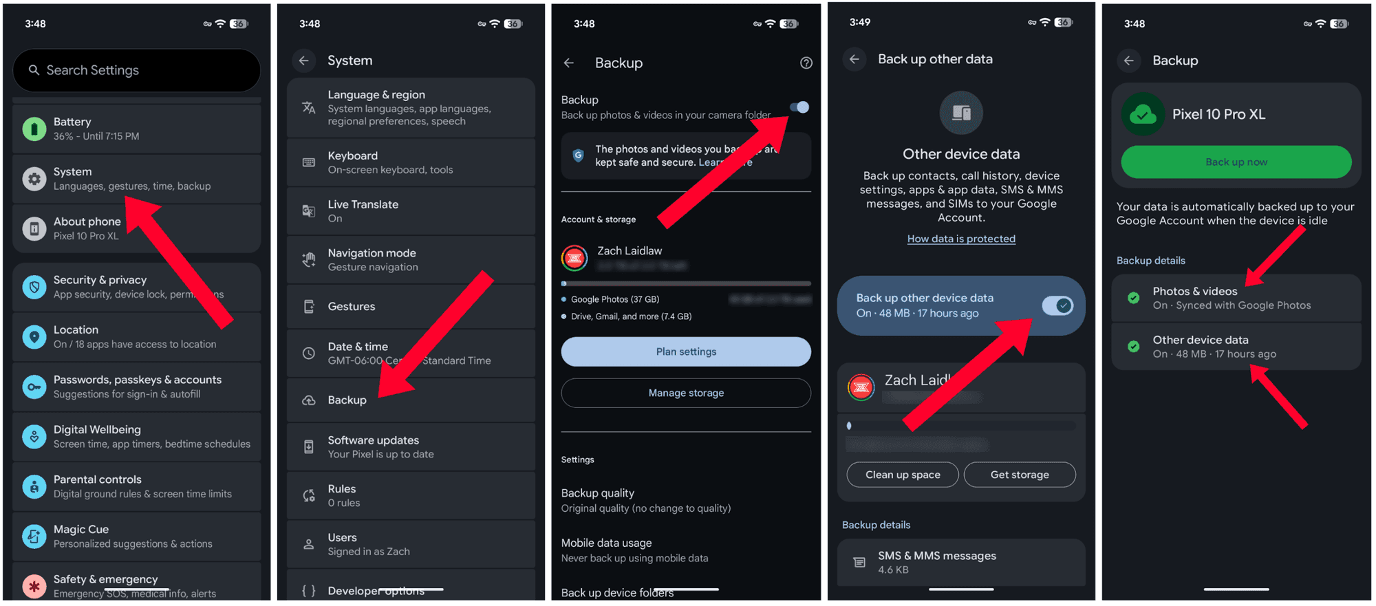 Note: Depending on your device and Android version, these steps may look a little different, but as long as you get to the backup section within your device settings, you will be able to save the correct data. For reference, the following screenshots were taken on a Google Pixel running Android 16.