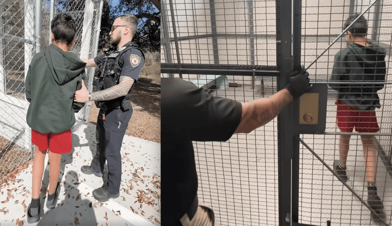 The sheriff's office posted video of a deputy perp-walking the handcuffed boy into a holding cell. Blaze News is not naming the suspect or showing his face because of his age.