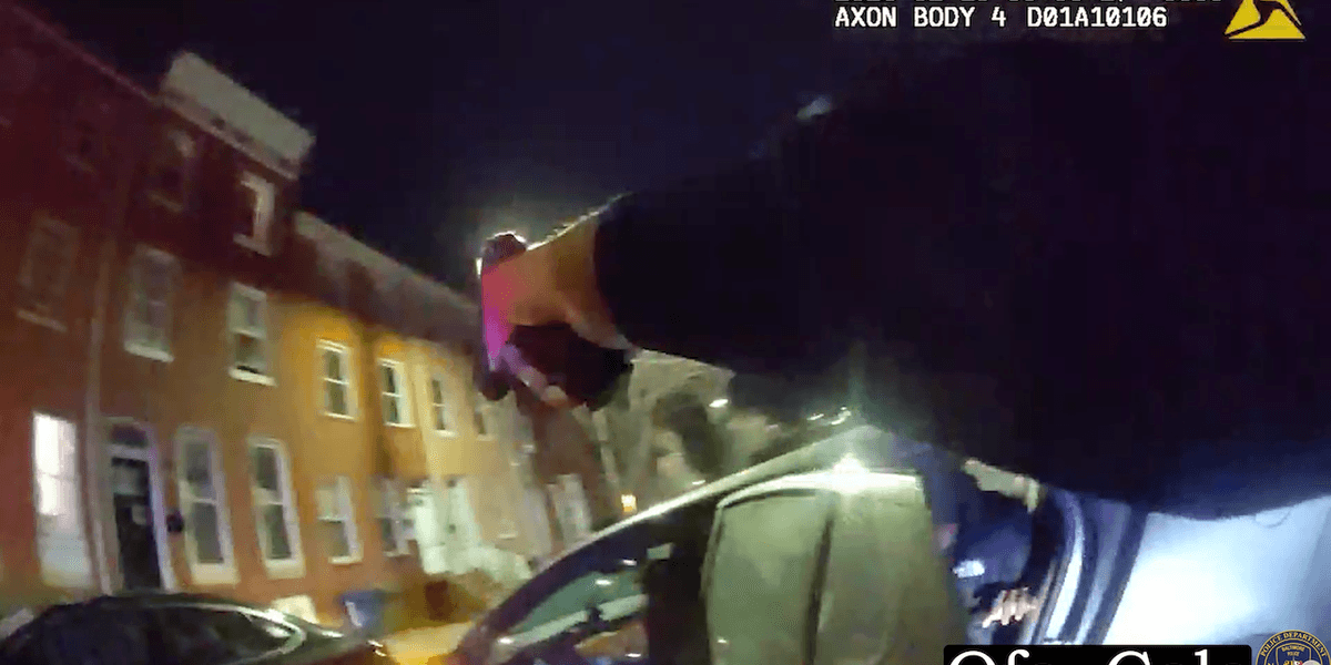 Police released Cole's body-worn camera video, which showed the officer arriving at the location on West Lombard Street; he soon encountered multiple people in a Kia sedan that backed up and struck a parked vehicle, the station said.