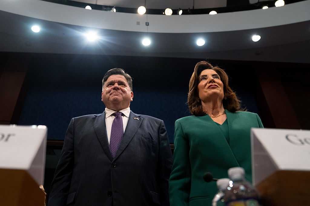 J.B. Pritzker, Kathy Hochul. Photo: Allison Robbert/Bloomberg via Getty Images