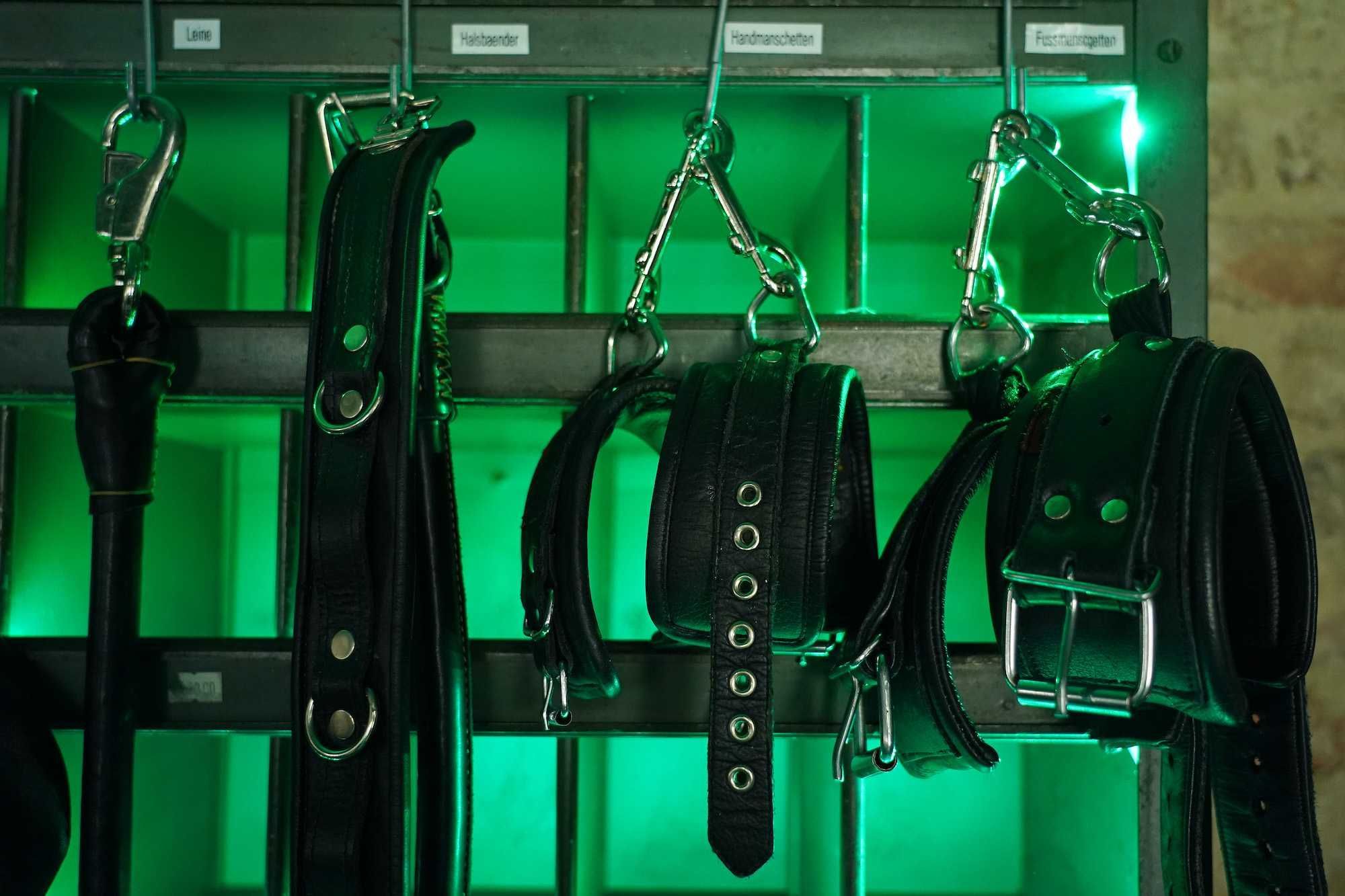 Other images showed him simulating oral and anal sex with the other leather-clad men.