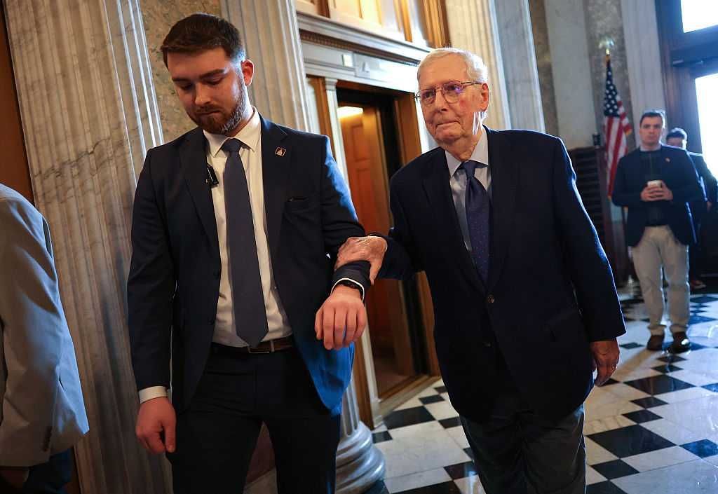McConnell sprained his wrist and cut his face after falling at a GOP staff lunch in 2024; took a fall at a D.C. hotel and was treated for a concussion in 2023; and fractured his shoulder when he fell in his home in Kentucky in 2019.