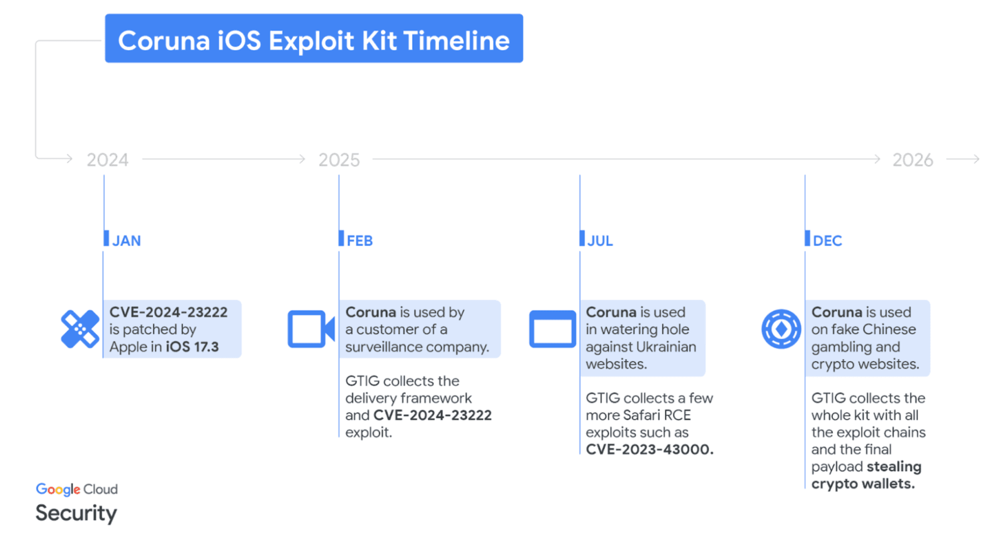 Google notes that Coruna has already been exploited by a “customer of a surveillance company,” as well as foreign nations, namely China and Russia. More alarming than that, however, “multiple threat actors” have also gained access to exploit techniques that can be customized to leverage new and unknown vulnerabilities for future attacks.