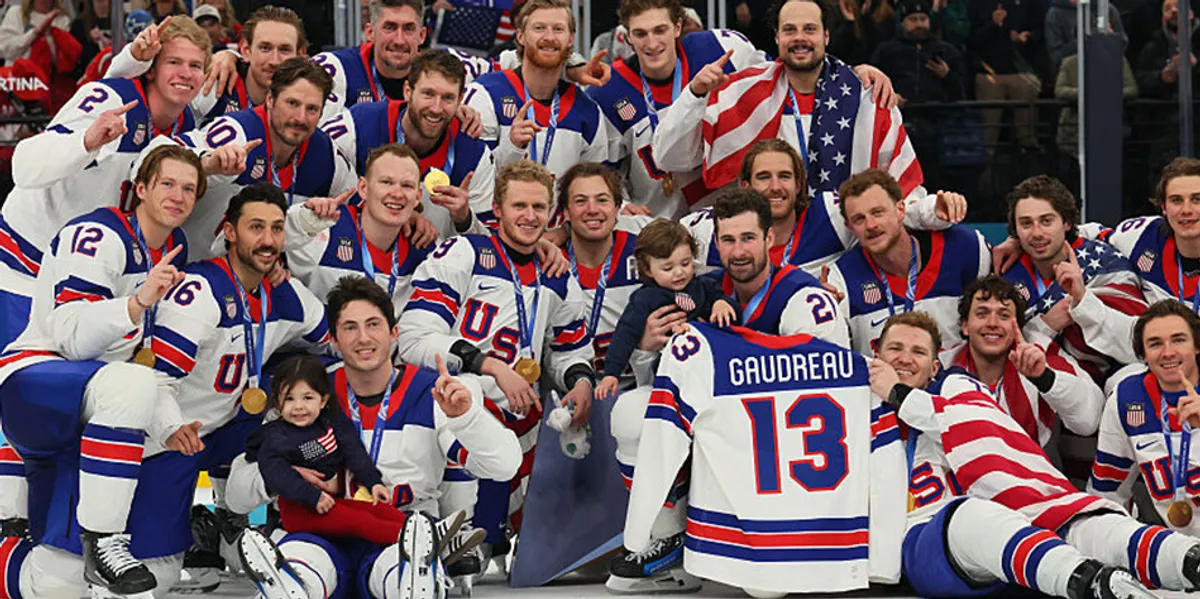 In yet another wonderful gesture, Team USA invited Johnny Gaudreau's widow, Meredith, to join the team in Italy on Saturday, along with the Gaudreau brothers' parents, Guy and Jane. The whole family was in the audience for the gold-medal game.