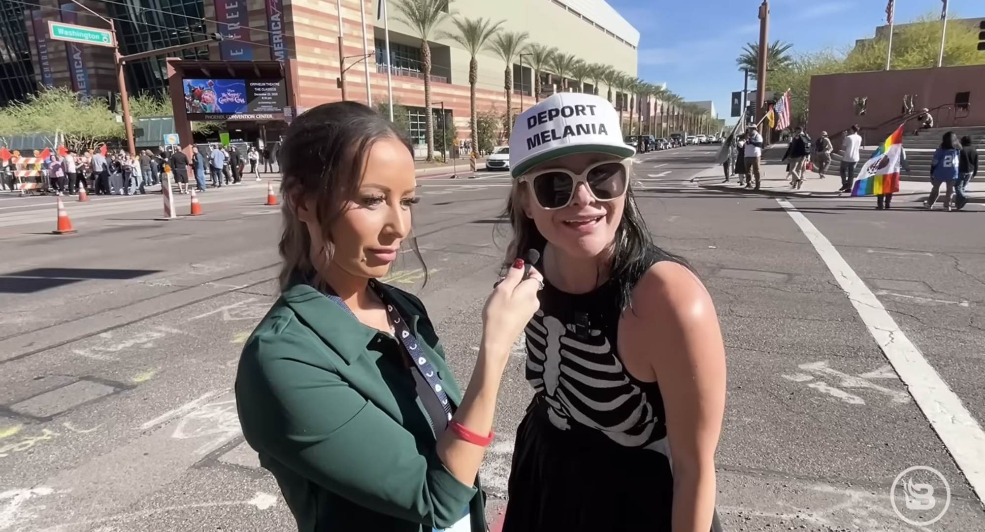 At one point, Gonzales and the protester wearing the "Deport Melania" hat began arguing about whether there were children present, given that the protester was shouting and blasting explicit music.