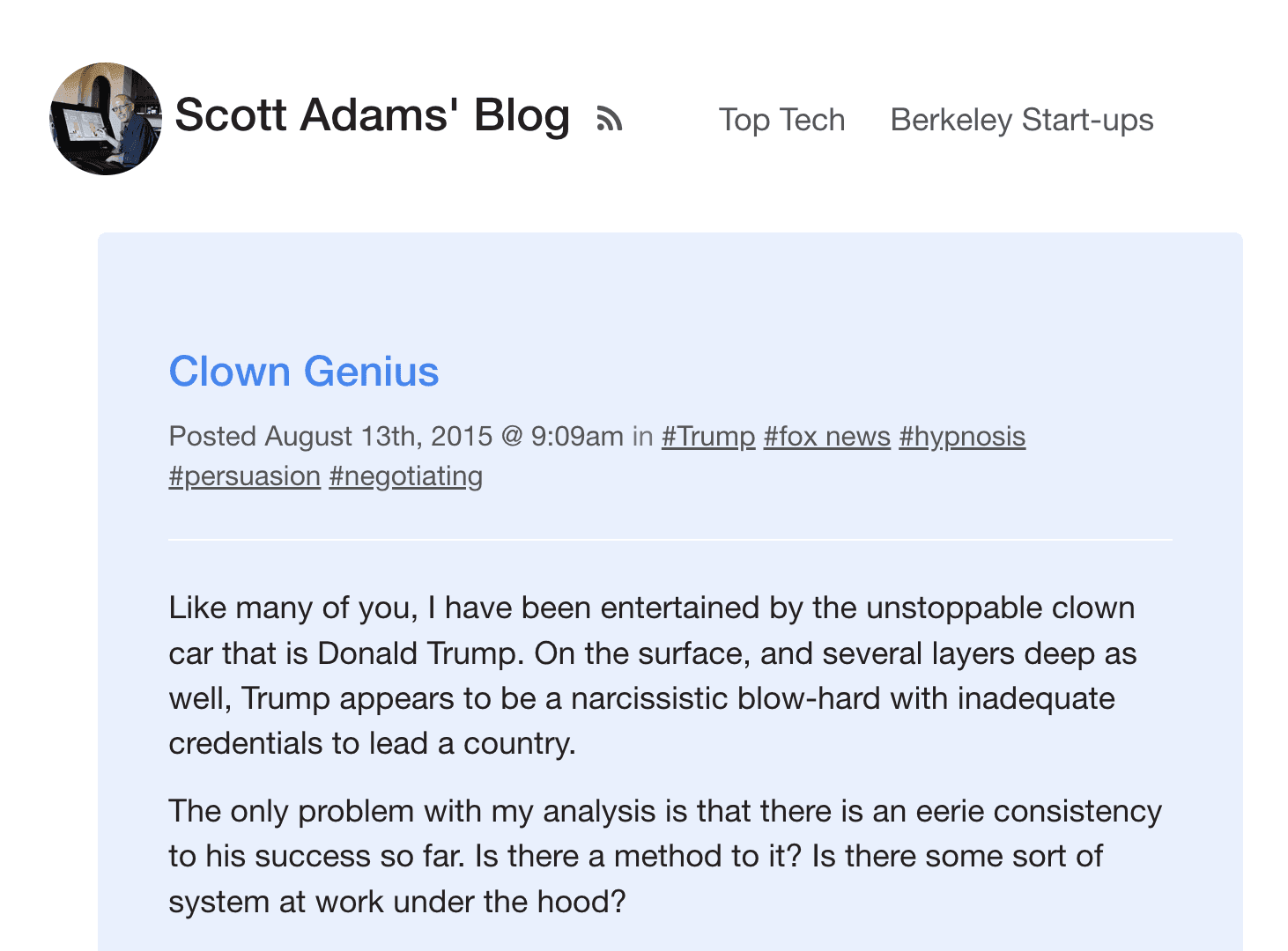 “Clown Genius” by Scott Adams, accessed via the Internet Archive