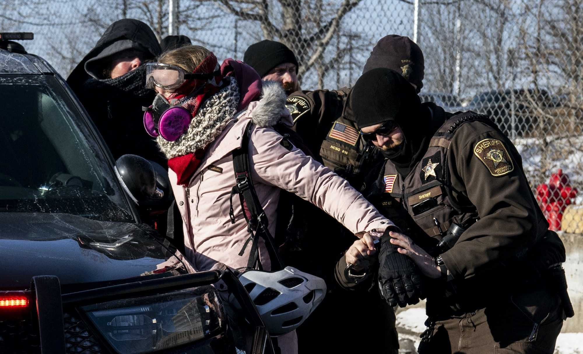 The protesters were damaging property and throwing ice chunks, according to a statement from the sheriff's office. Videos on social media showed protesters waving sex toys at officers, while another report said bottles were thrown at them.