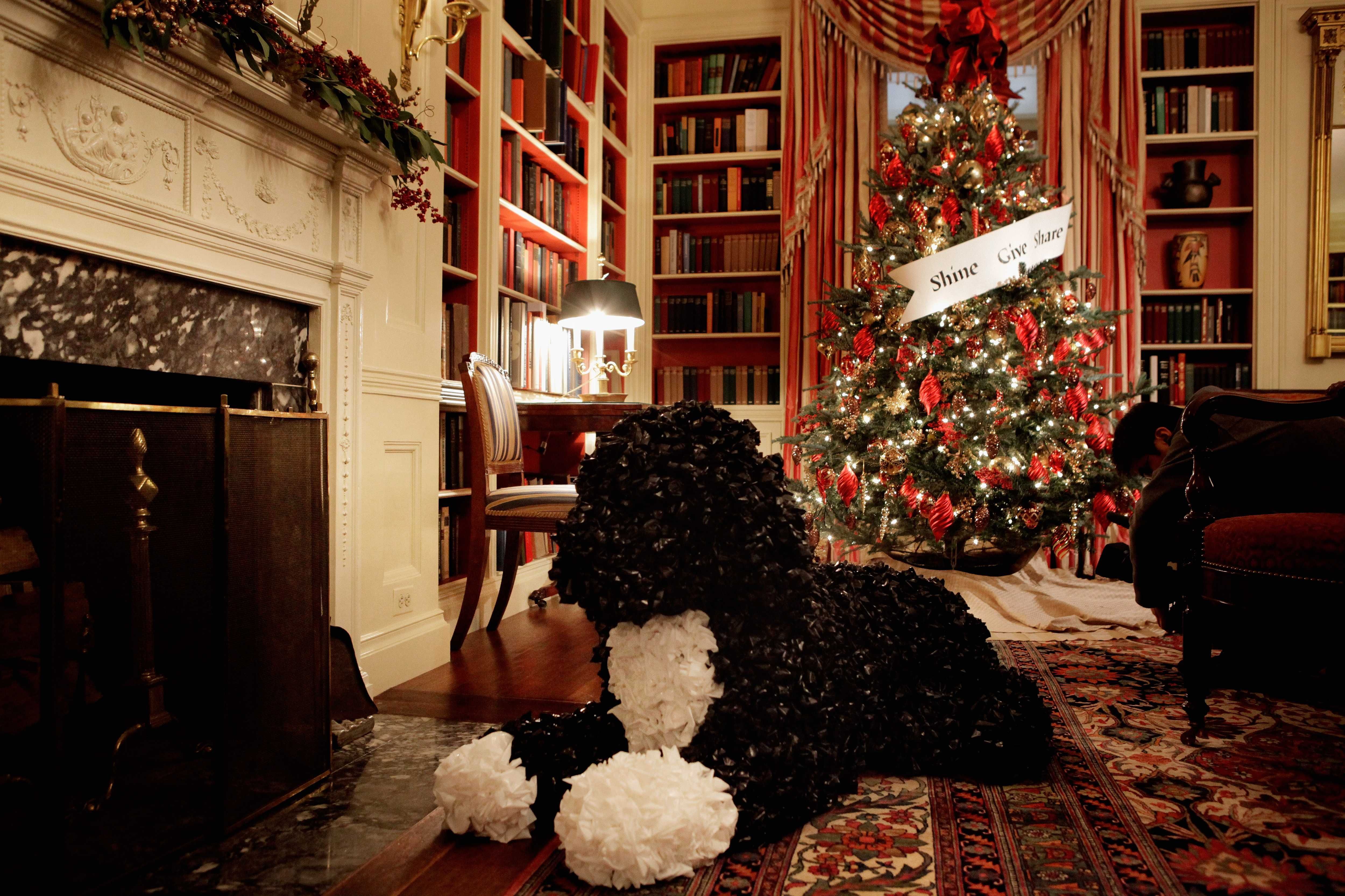 Obama's theme balanced familiarity and festivity, even featuring a decorative recreation of their dog, Bo.
